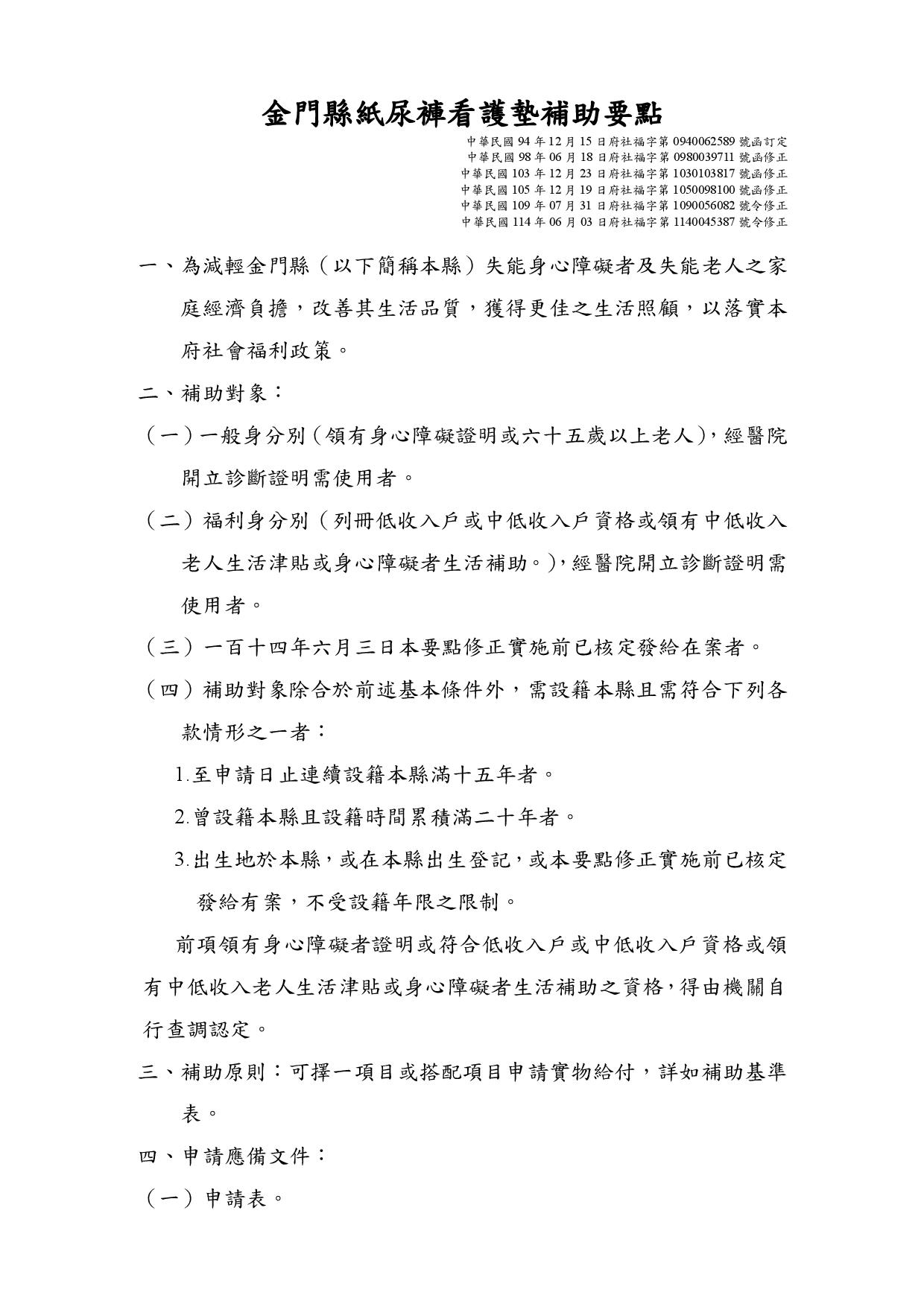 一、個人戶籍謄本或戶口名簿影本乙份(需得證明符合設籍資格規定)。 二、身心障礙證明影本。 三、醫院診斷證明需配用者(請出具書寫有「需使用尿布」之診斷證明)。