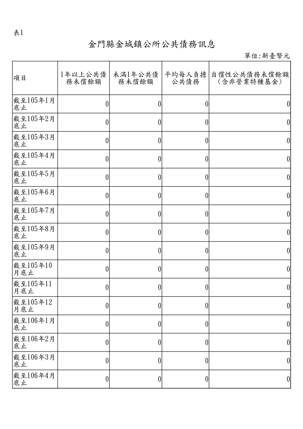 (一)一年以上公共債務未償餘額為○○萬元。